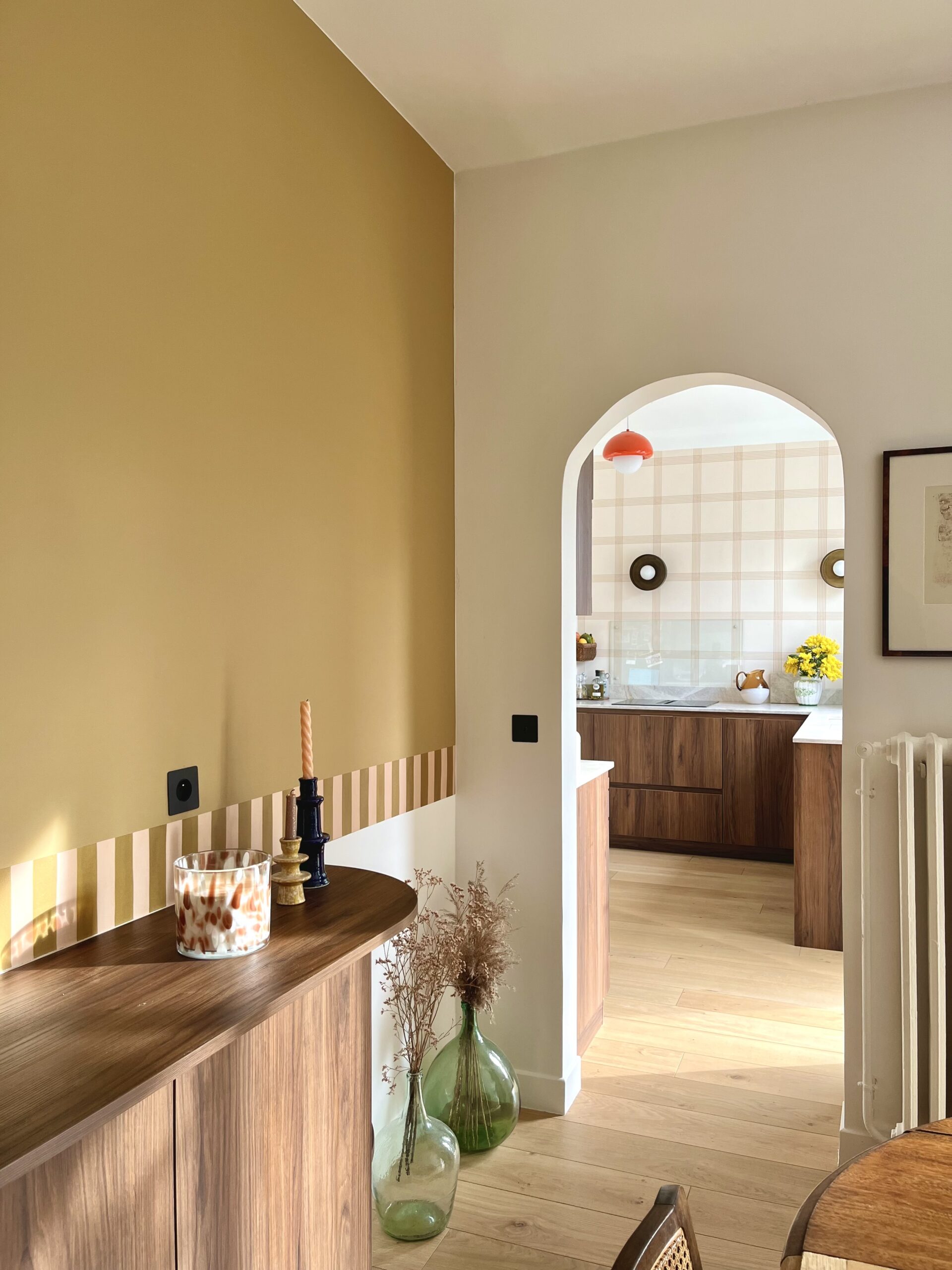 Rénovation d’une maison de famille en banlieue parisienne. Une maison aux couleurs audacieuses et chaleureuses.
